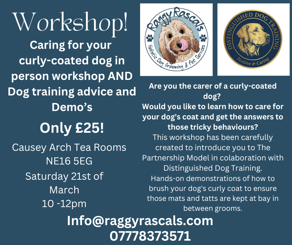 Do you own a curly-coated dog? Have you ever been shown how to care for your dog's coat or how to brush your dog correctly to keep those mats away? If you want to learn how to ensure your dog is well-kept between grooms, then my workshop is a must for you.